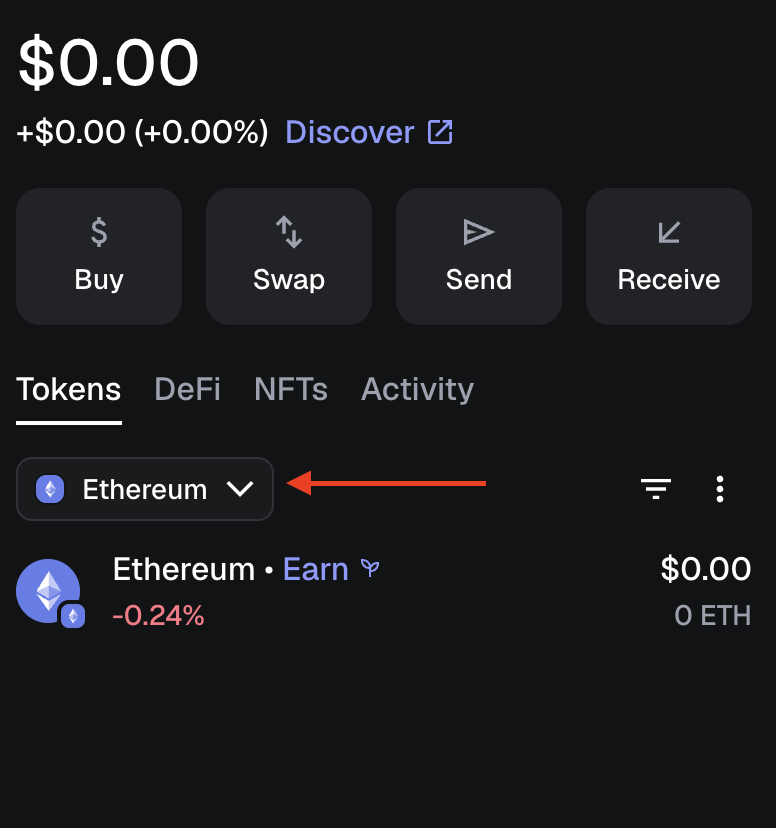 เปิด MetaMask แล้วคลิกที่ Network Selector