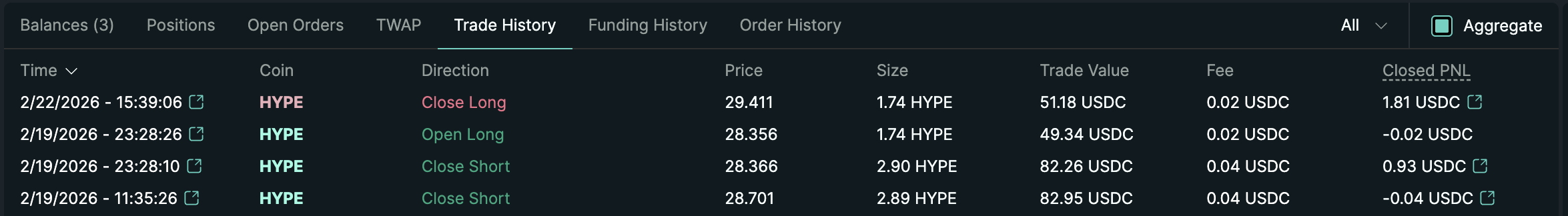 - Fee: ค่าธรรมเนียมที่จ่ายให้แพลตฟอร์ม Hyperliquid