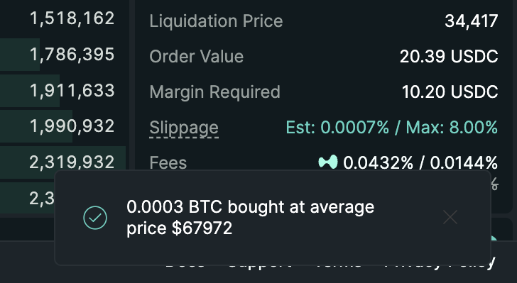 4. ยืนยันเปิด position แล้วดู entry price, liquidation price, PNL
